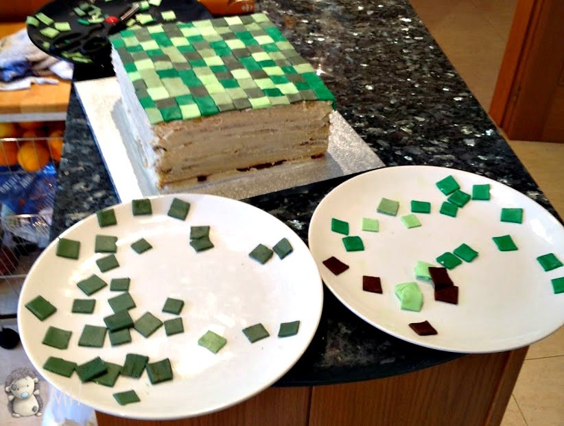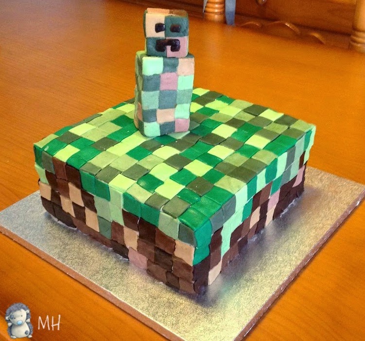El resultado fue éste la Tarta Fondant Minecraft (claro que si no conocéis el juego, no os gustará demasiado):