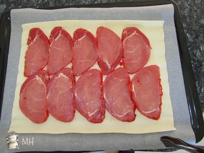 En este punto, se puede añadir una capa de jamón, pero normalmente yo lo hago sin éste para que no esté excesivamente cargado.