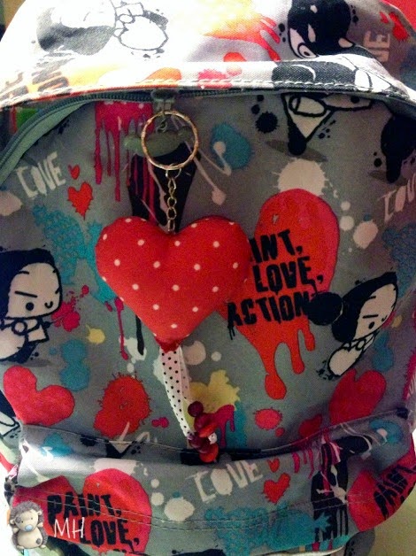 Aquí podéis ver como rápidamente ha pasado a manos de mi nena, para decorar su mochila.