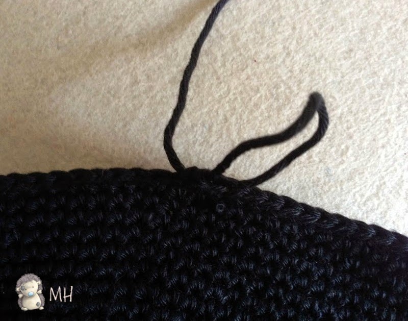 Para rematar el sombrero sin que se note, en el último punto sacamos el hilo, lo enhebramos en una aguja de punto y lo pasamos por debajo del primer punto de la misma vuelta; después lo volvemos a pasar por el centro del último punto del sombrero; explicado es confuso, pero al hacerlo enseguida se ve como ha de hacerse. El cabo restante lo escondemos en el interior del sombrero pasándolo con la aguja.