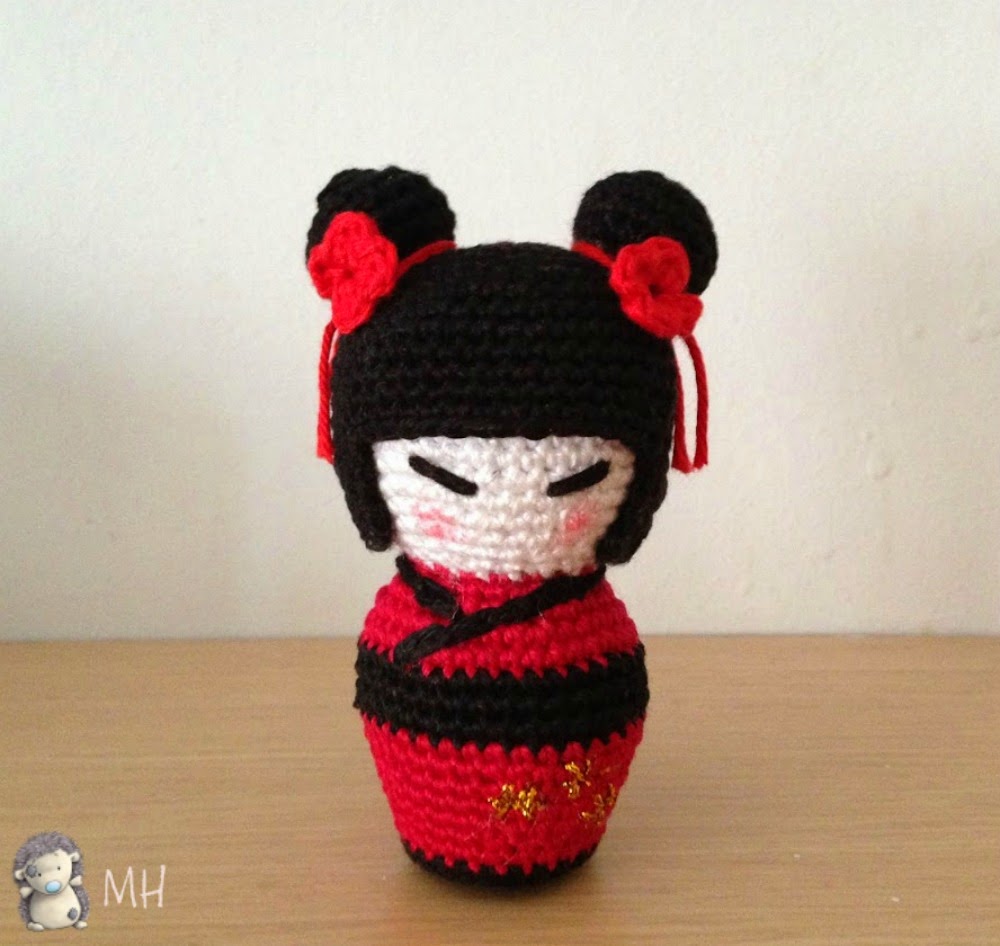 Kokeshi amigurumi roja y negra