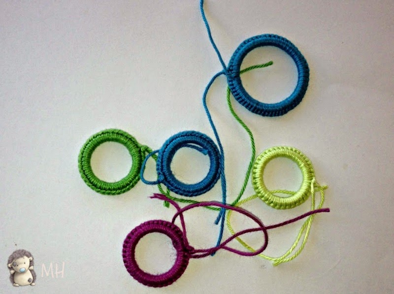 Lo primero es forrar las arandelas a crochet.