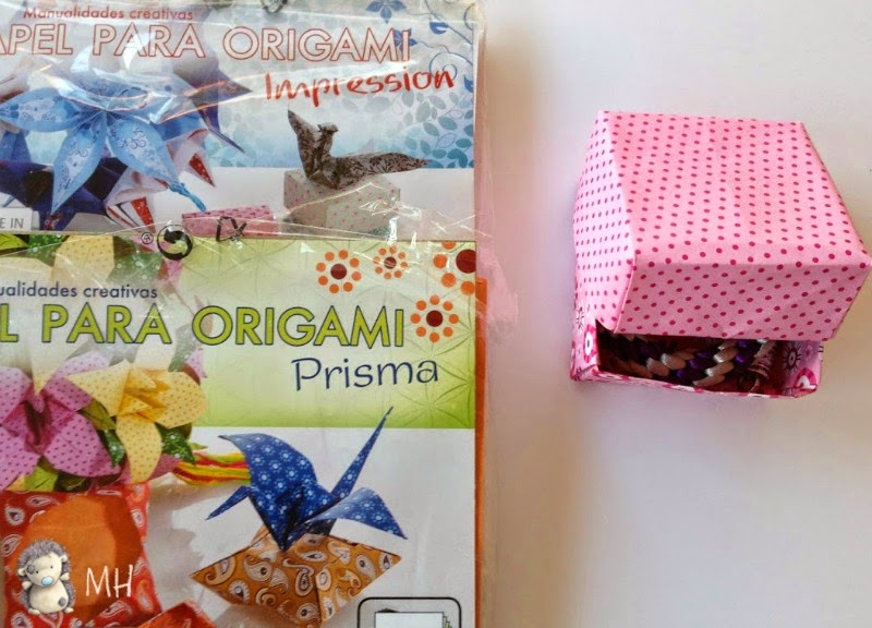 El papel de regalo en realidad forma parte de un juego de papeles para origami comprados en Aldi, con estampados muy bonitos.