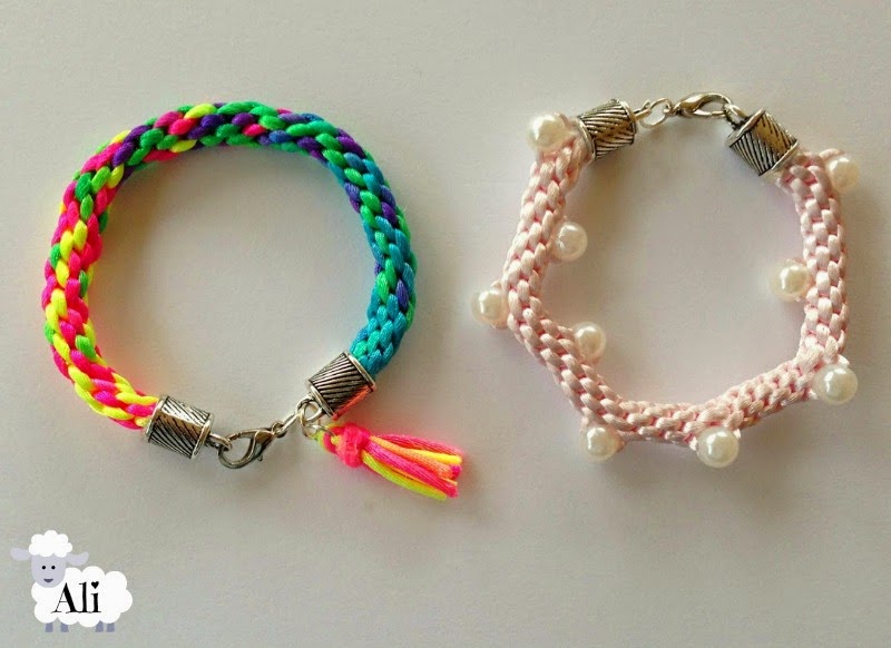 Pulseras kumihimo neon y perlas