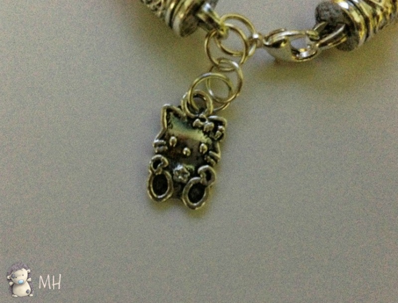 Como colgantes hemos puesto (tras muchas deliberaciones, claro) una borla y un charm de Hello Kitty.