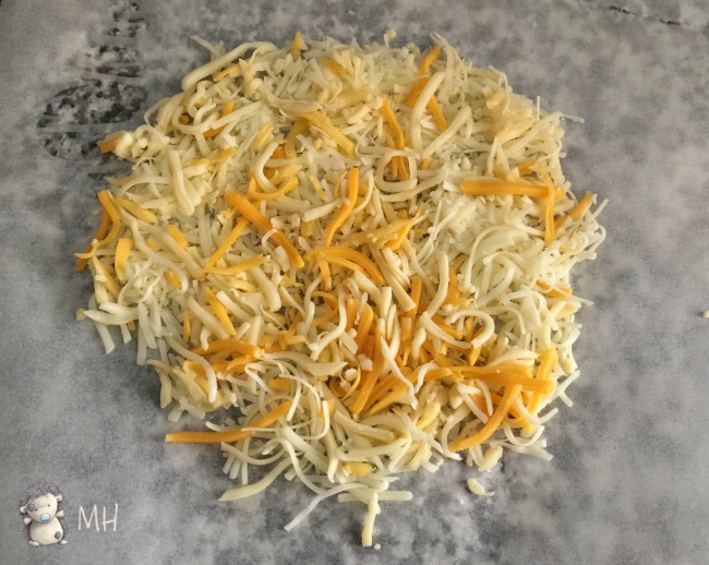 Extendemos el queso rallado sobre el papel de horno formando un círculo amplio.